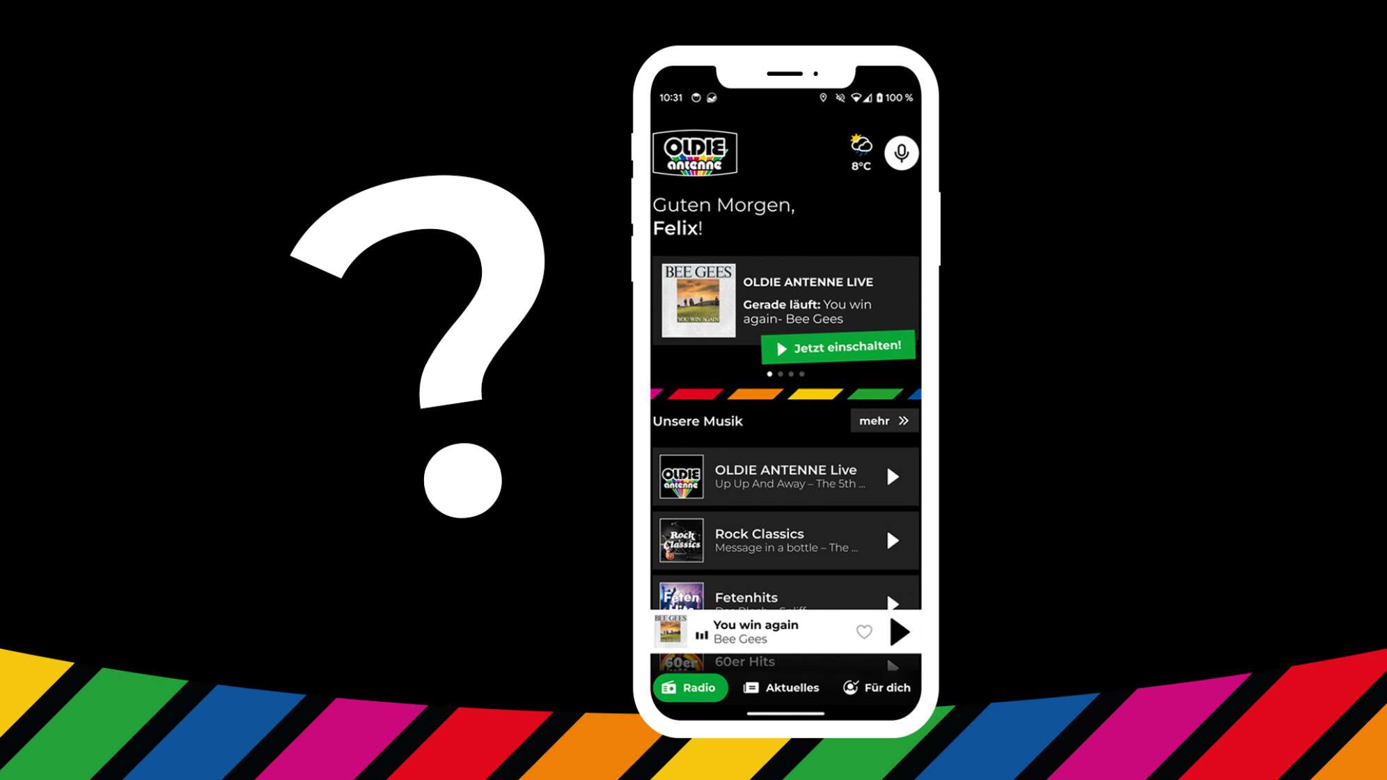 Ganz klar: Immer Radio hören und einfach regelmäßig reinklicken in die OLDIE ANTENNE App und nachsehen, was es an diesem Tag Neues zu entdecken gibt! 😉 Oder ihr lasst euch von uns benachrichtigen: Aktiviert die Pushnachrichten in der OLDIE ANTENNE App. Beides findet ihr im „Für dich“-Bereich unter „Einstellungen“.
